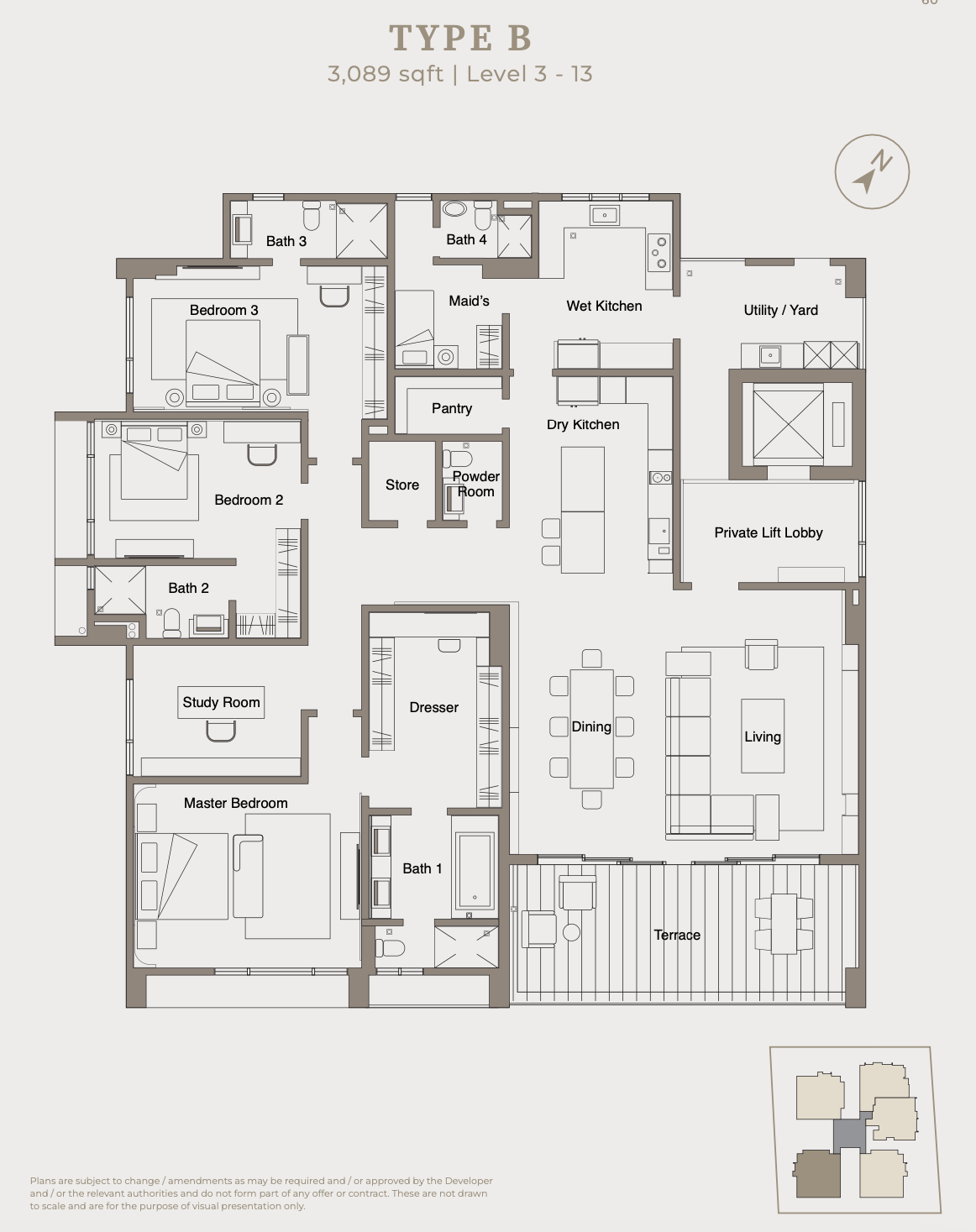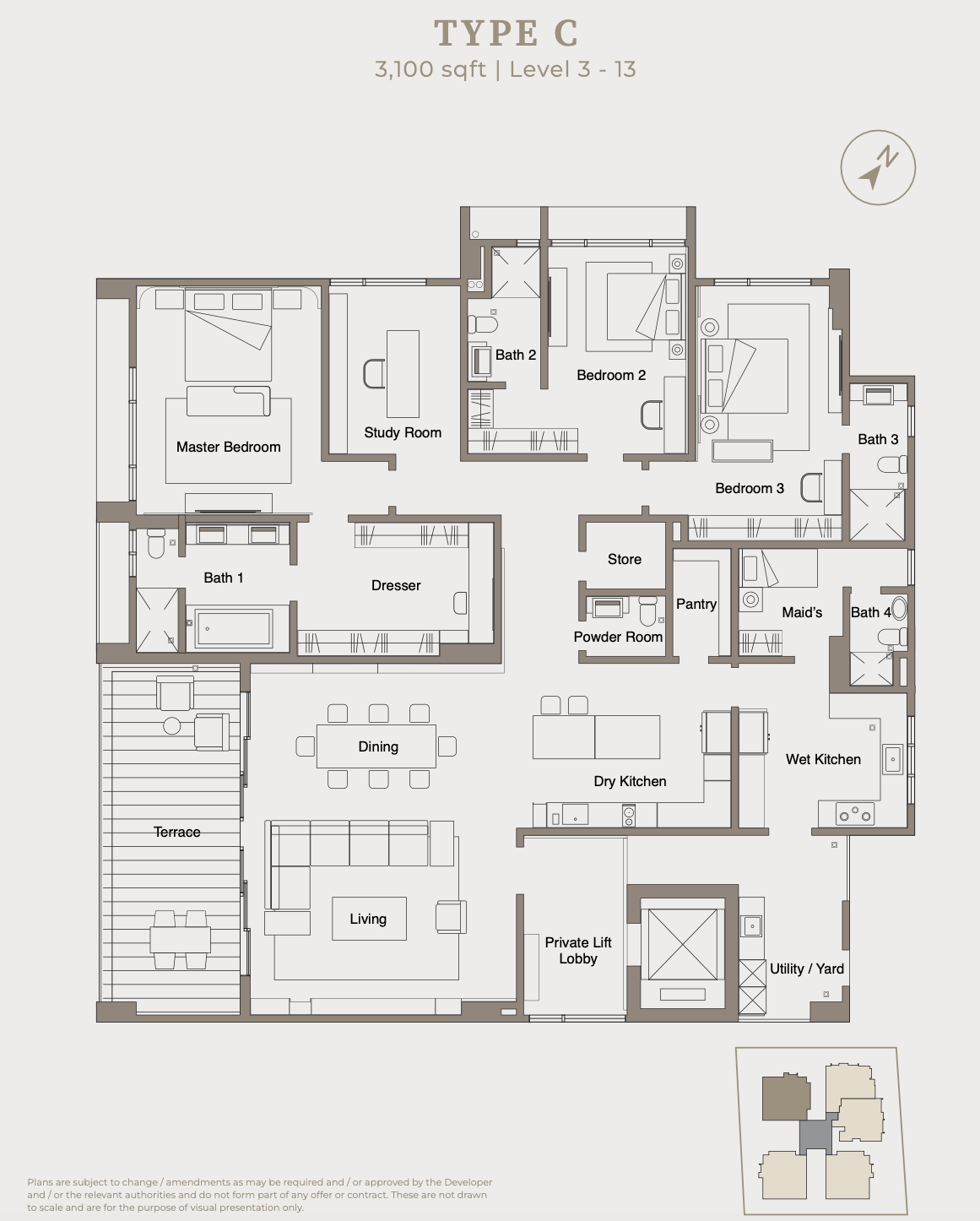 Disclaimer. This serves as an invitation to get response from public and register only and is not to be treated as an offer for sale. The information contain herein is subject to change and cannot be part of an offer or contract. All renderings are artist’s impression only. All measurements are approximate. While every reasonable care has been taken in preparing the visual, the developer cannot be held responsible for any inaccuracy. All the above items and packages are subject to variations, modifications and substituition as may be required by the authorities or recommended by Artitect or Engineer.