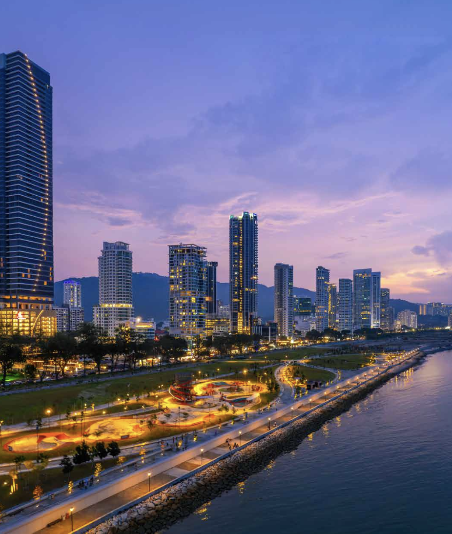 位于槟城最繁华的 CBD 区与海景地段,步行即可抵达商业、美食与购物中心,位置价值极高。